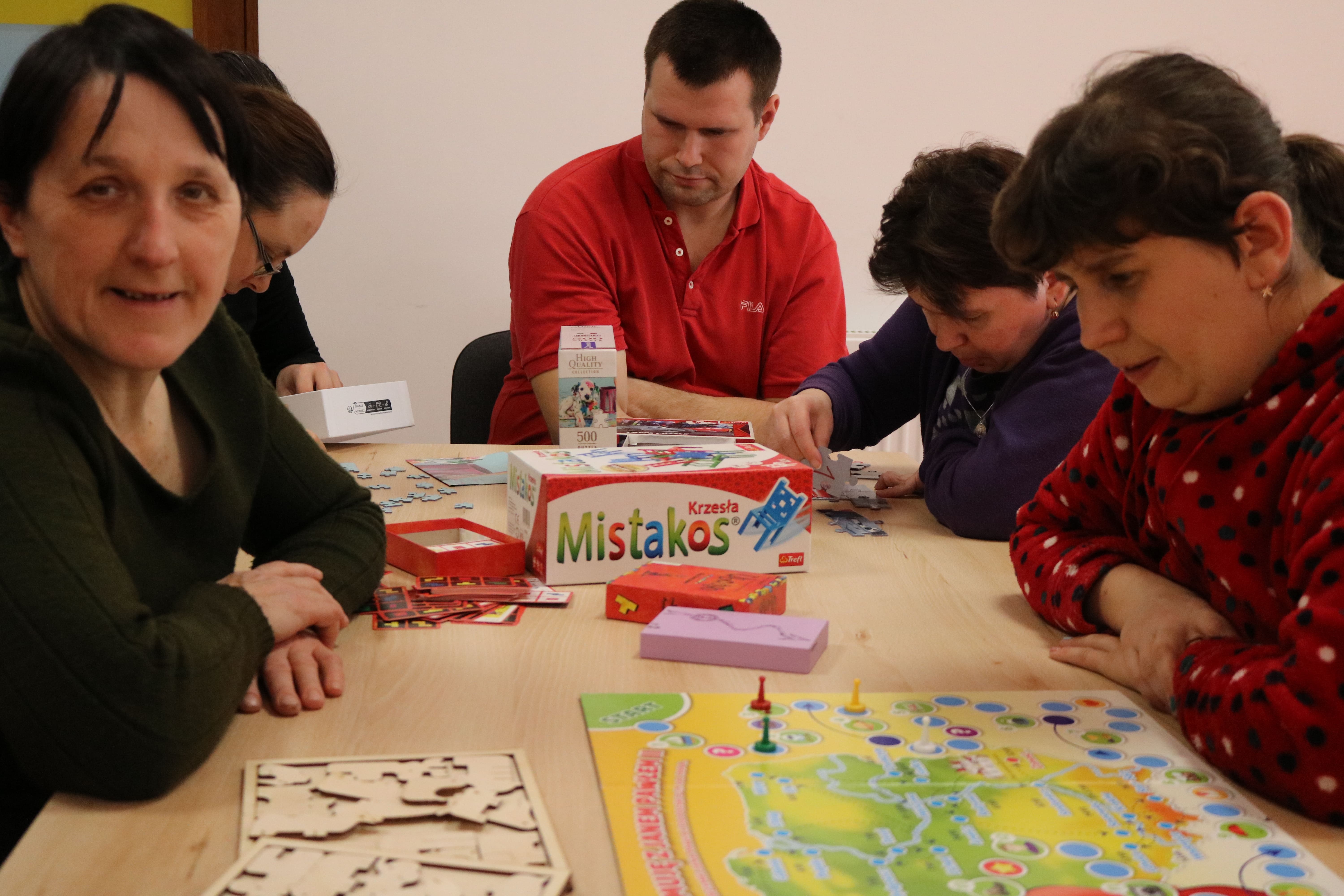 Uczestnicy mieli okazję zapoznać się z różnorodnymi rodzajami łamigłówek, gier planszowych oraz puzzli, do których prowadzący omówili zasady oraz cele, zachęcając do aktywnego angażowania się w nadchodzące zadania. Dzięki temu uczestnicy zrozumieli, jakie korzyści płyną z rozwiązywania zagadek i wspólnej zabawy. Po prezentacji wszyscy zostali podzieleni na grupy, w których mieli za zadanie wspólnie rozwiązać proste łamigłówki. To wyzwanie sprzyjało współpracy i wymianie pomysłów, a także rozwijaniu umiejętności logicznego myślenia, gdzie uczestnicy mieli możliwość dzielić się swoimi spostrzeżeniami. Następnie przyszedł czas na rozgrywkę gier planszowych. Gry wprowadziły element zdrowej rywalizacji oraz zabawy, co pozytywnie wpłynęło na atmosferę zajęć. Kolejnym etapem „łamigłówkowej” integracji było układanie puzzli w grupach. Wspólne działanie nad puzzlami pozwoliło im doskonalić umiejętności manualne oraz rozwijać zdolności interpersonalne.