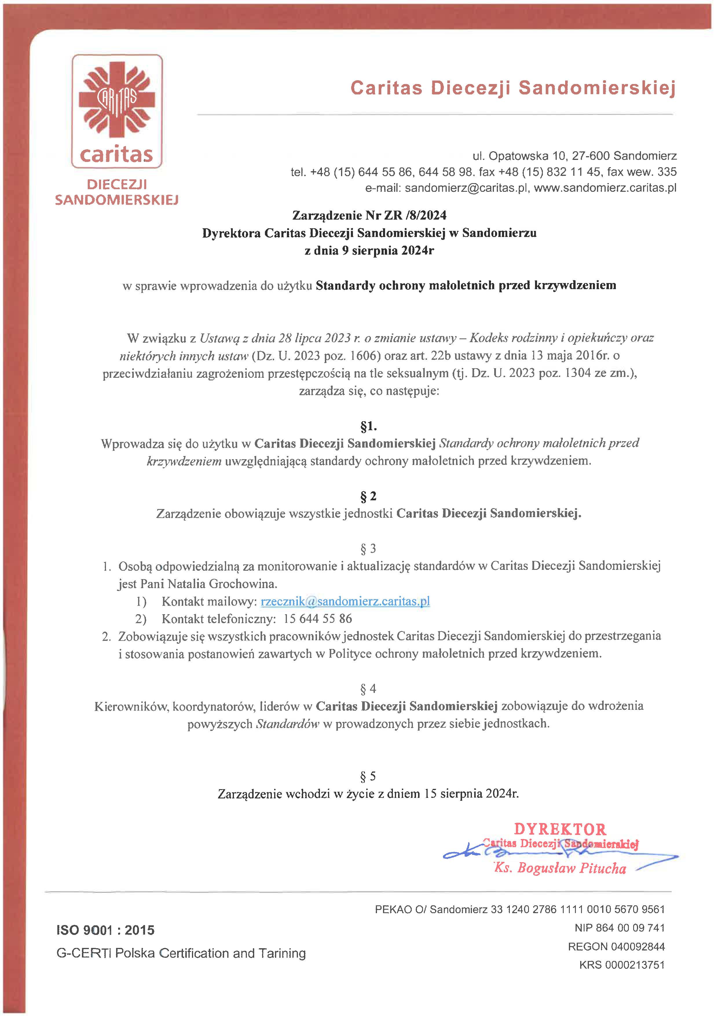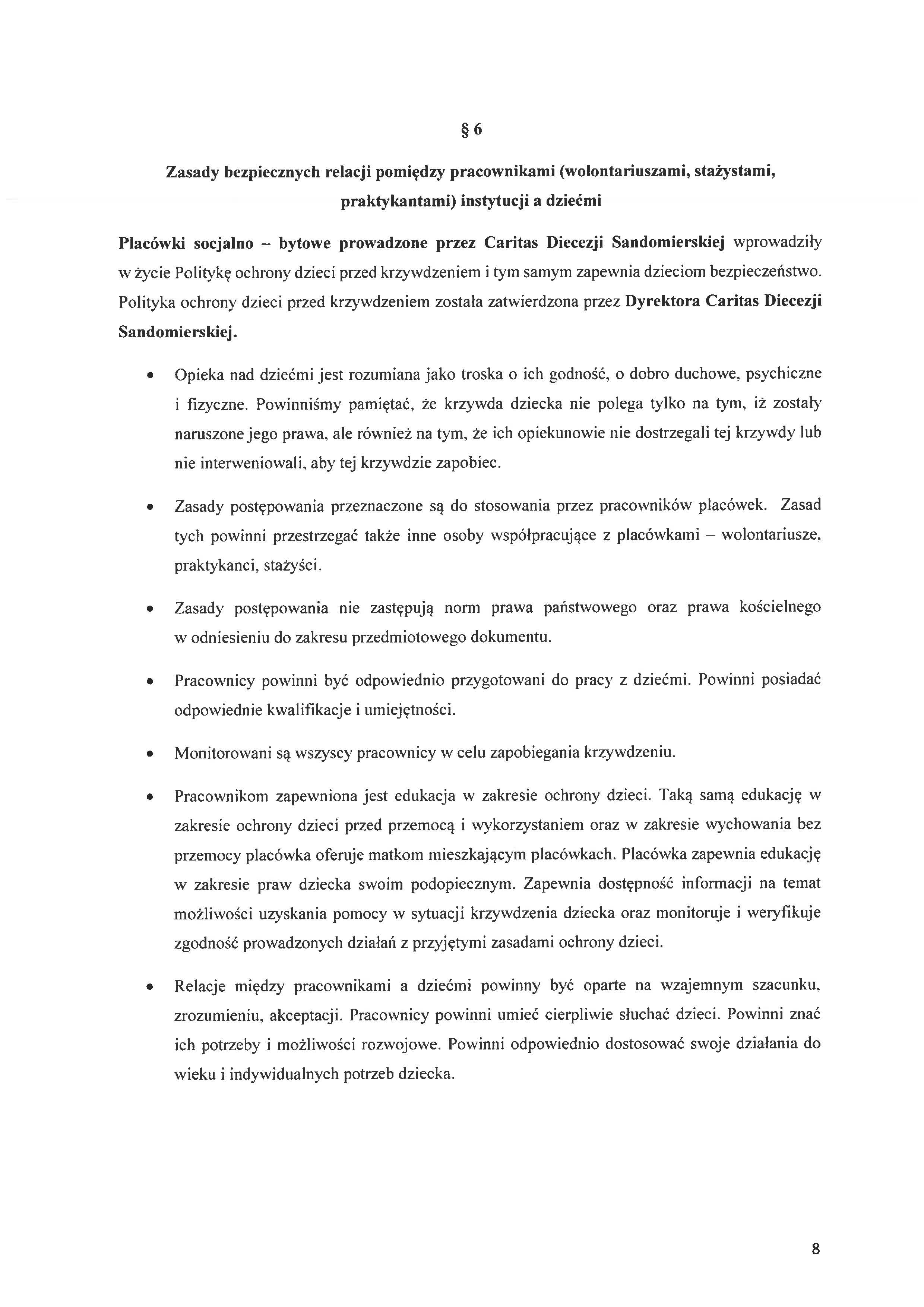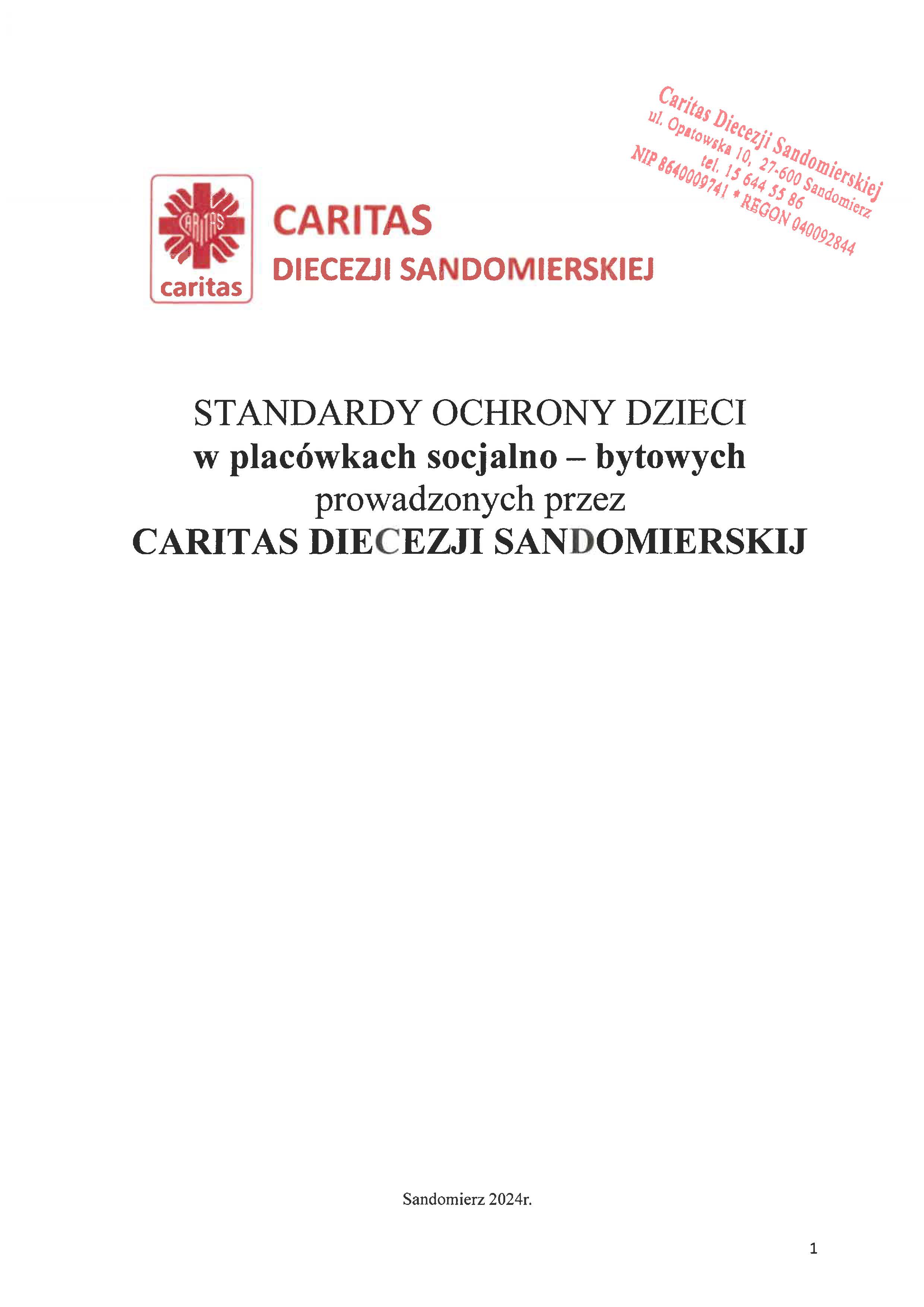 Standardy Ochrony Dzieci w placówkach socjalno - bytowych prowadzonych przez CARITAS DIECEZJI SANDOMIERSKIEJ (kliknij by powiększyć):