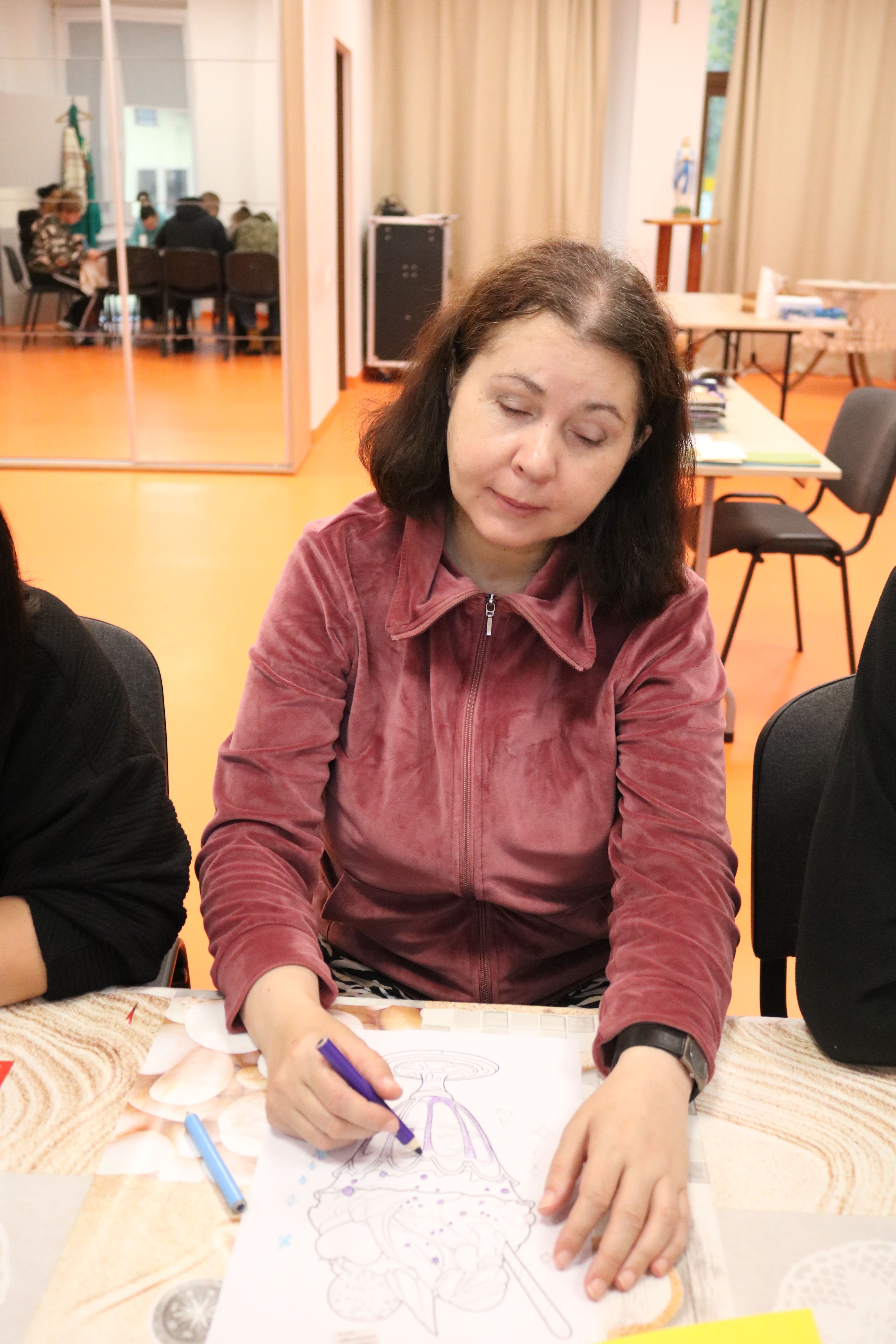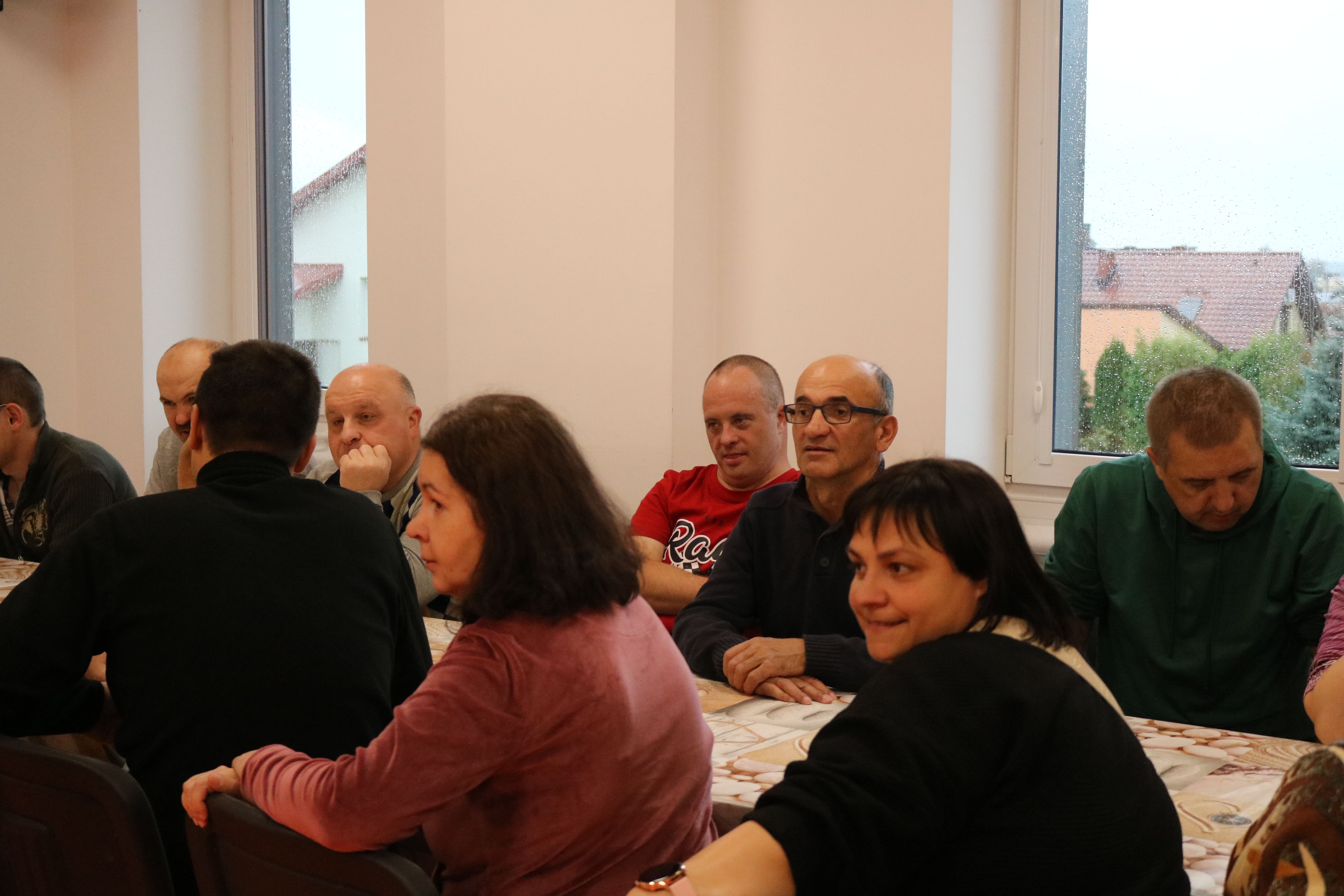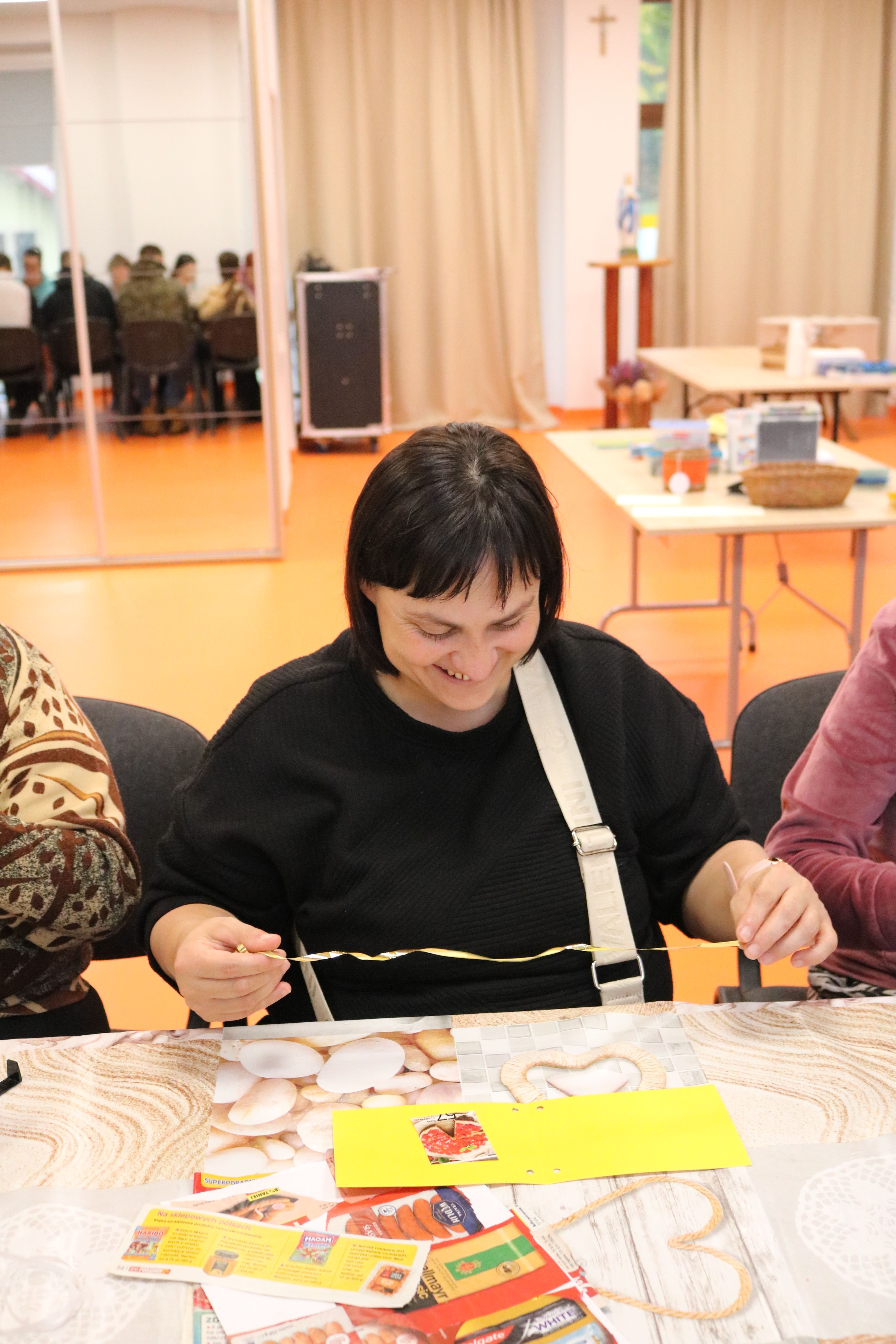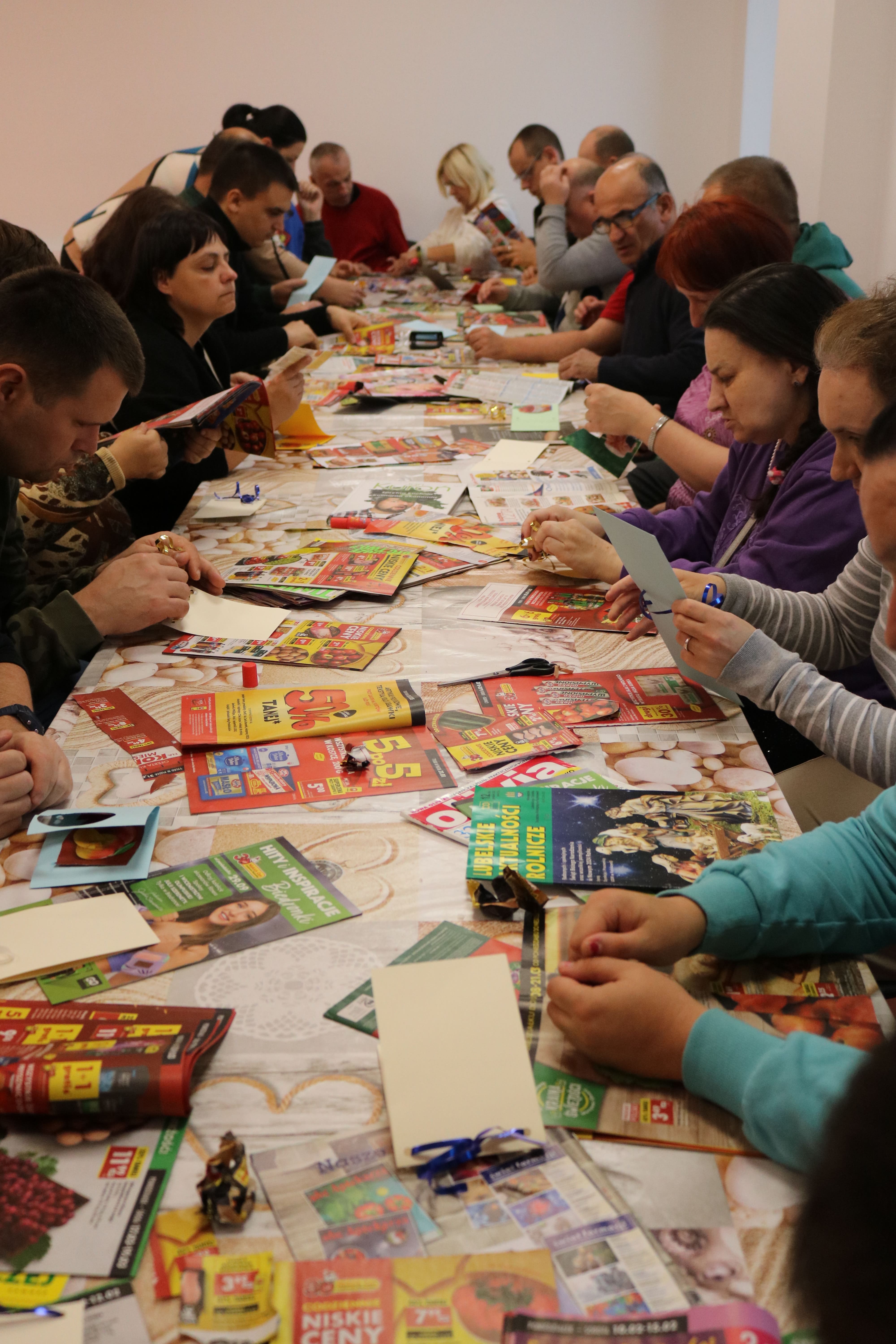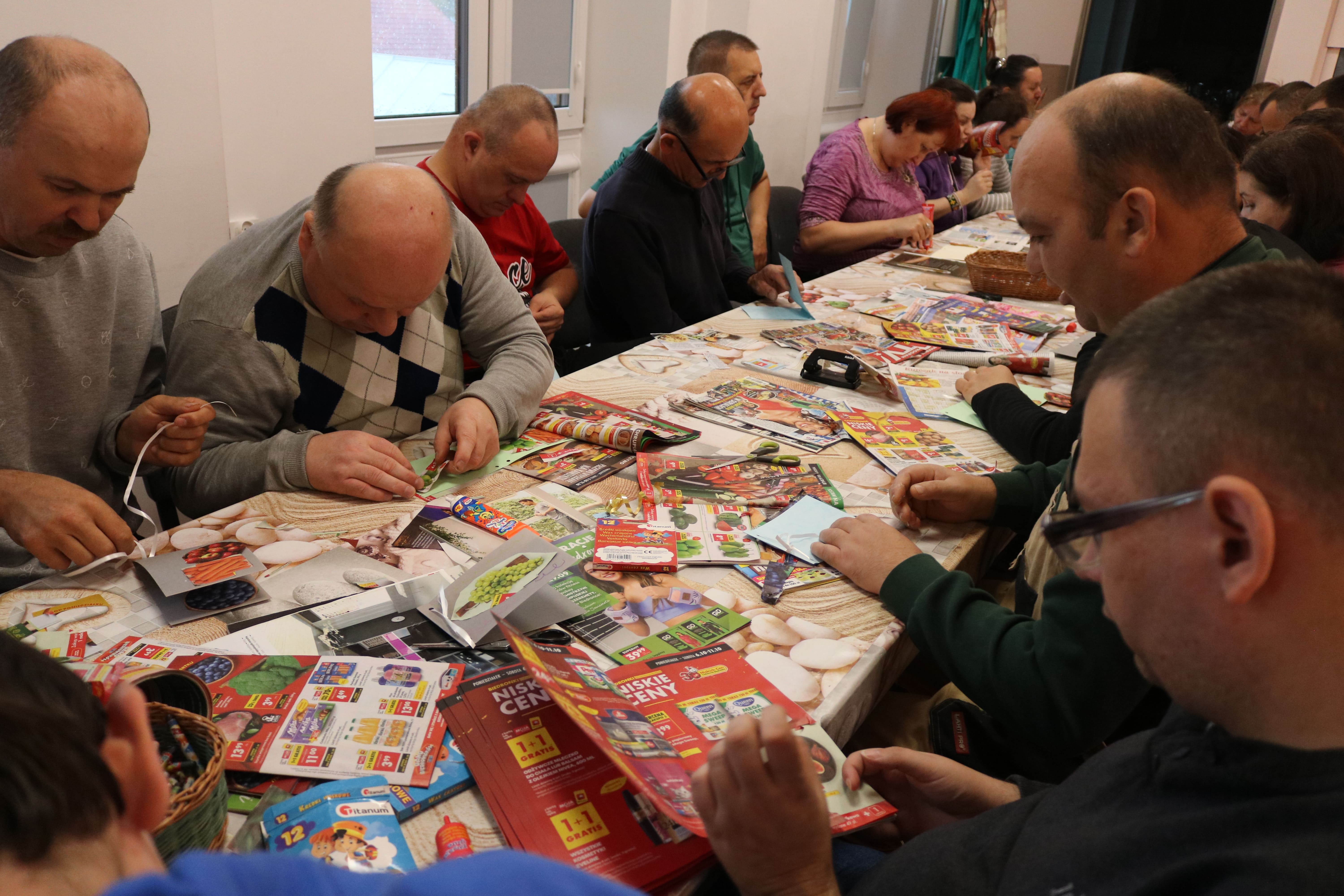 Po zakończeniu części plastycznej odbyła się dyskusja na temat potraw, które można przygotować z owoców i warzyw. Uczestnicy wymieniali się przepisami na zdrowe desery – takimi jak sałatki owocowe, galaretki, kompoty, soki czy ciasta. Ten etap pozwolił poszerzyć wiedzę o alternatywach dla tradycyjnych, kalorycznych słodyczy. Instruktorzy wspólnie z uczestnikami omawiali także wartości odżywcze owoców oraz ich znaczenie w codziennej diecie, zachęcając do ich częstszego spożywania w różnych formach.