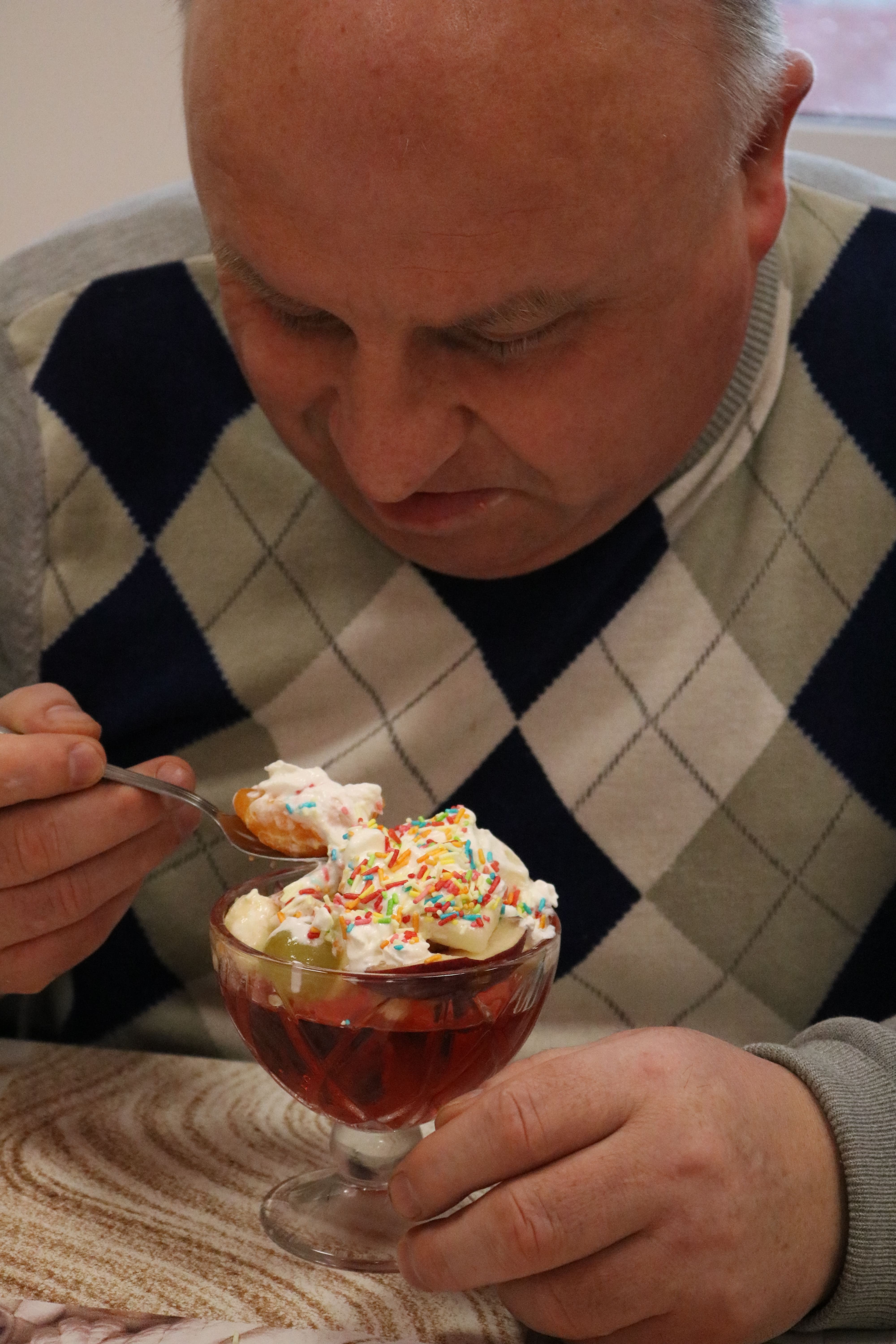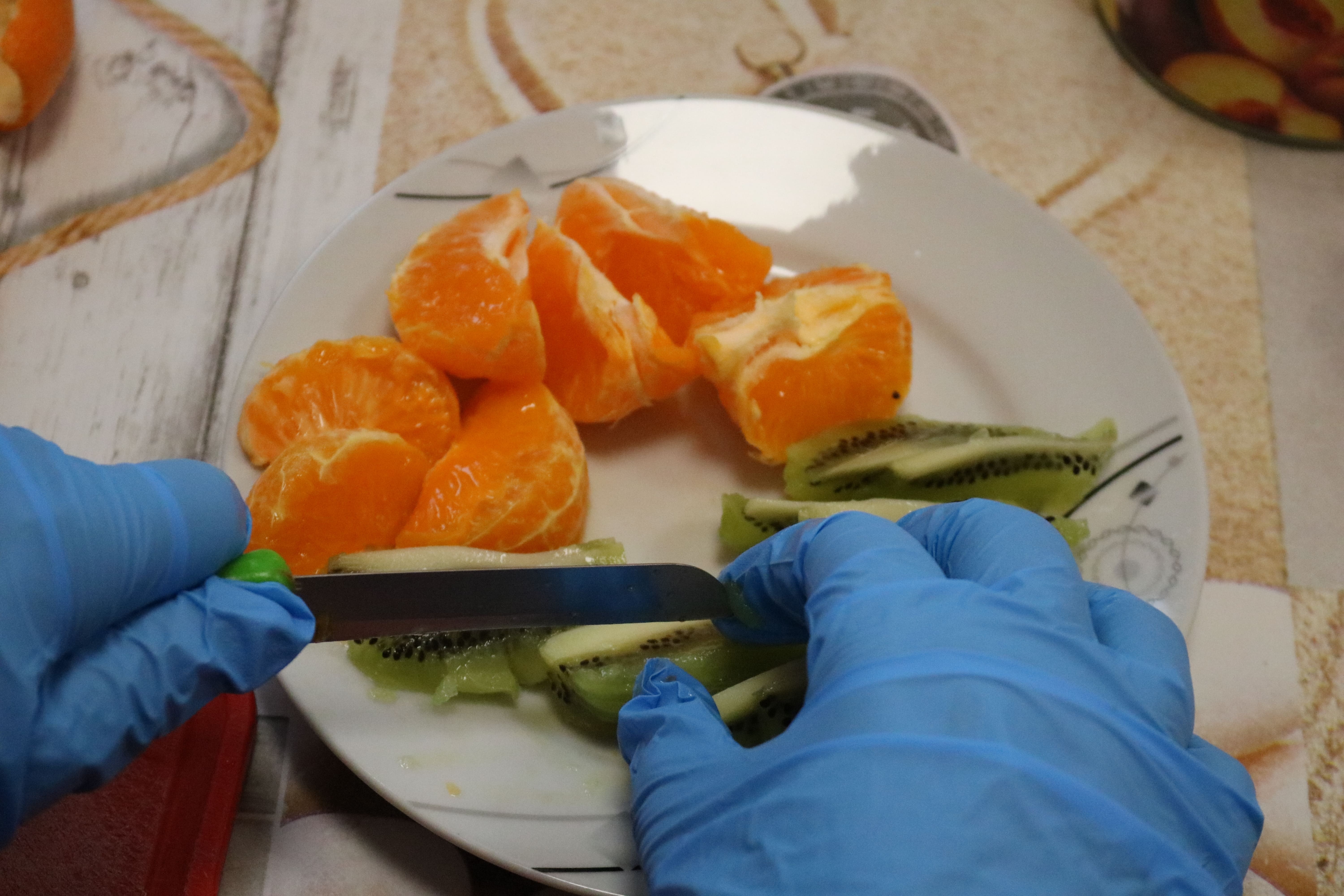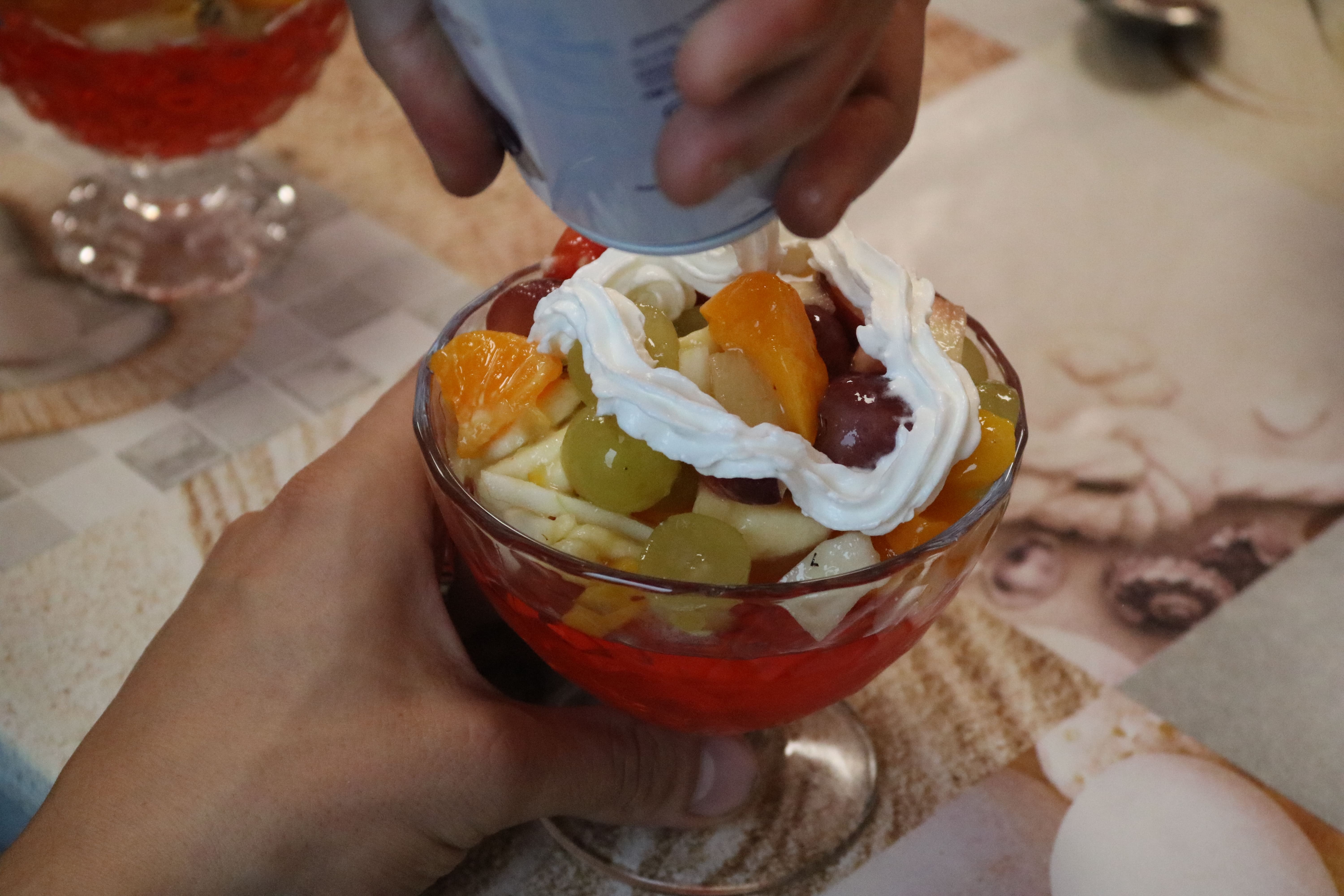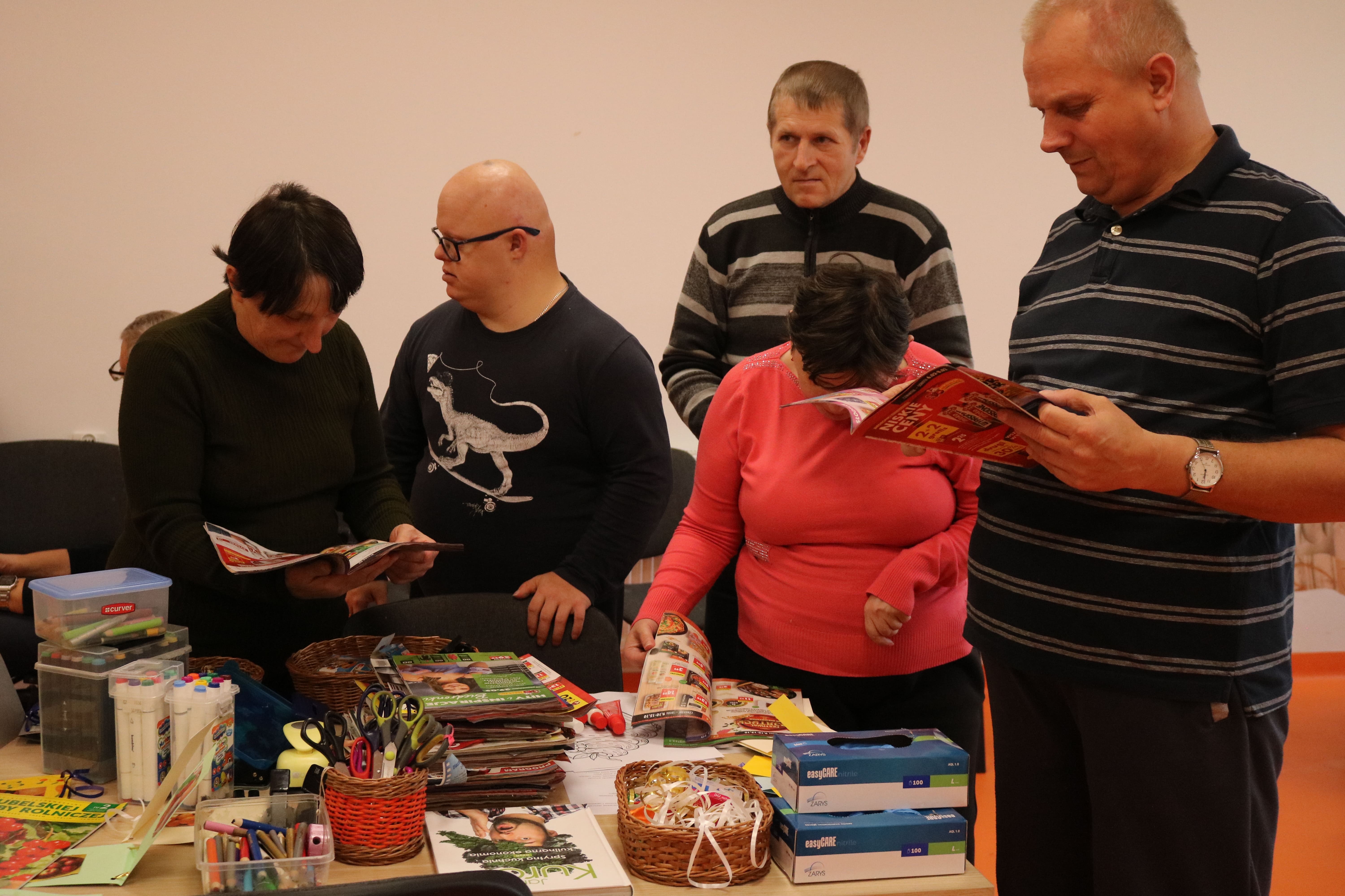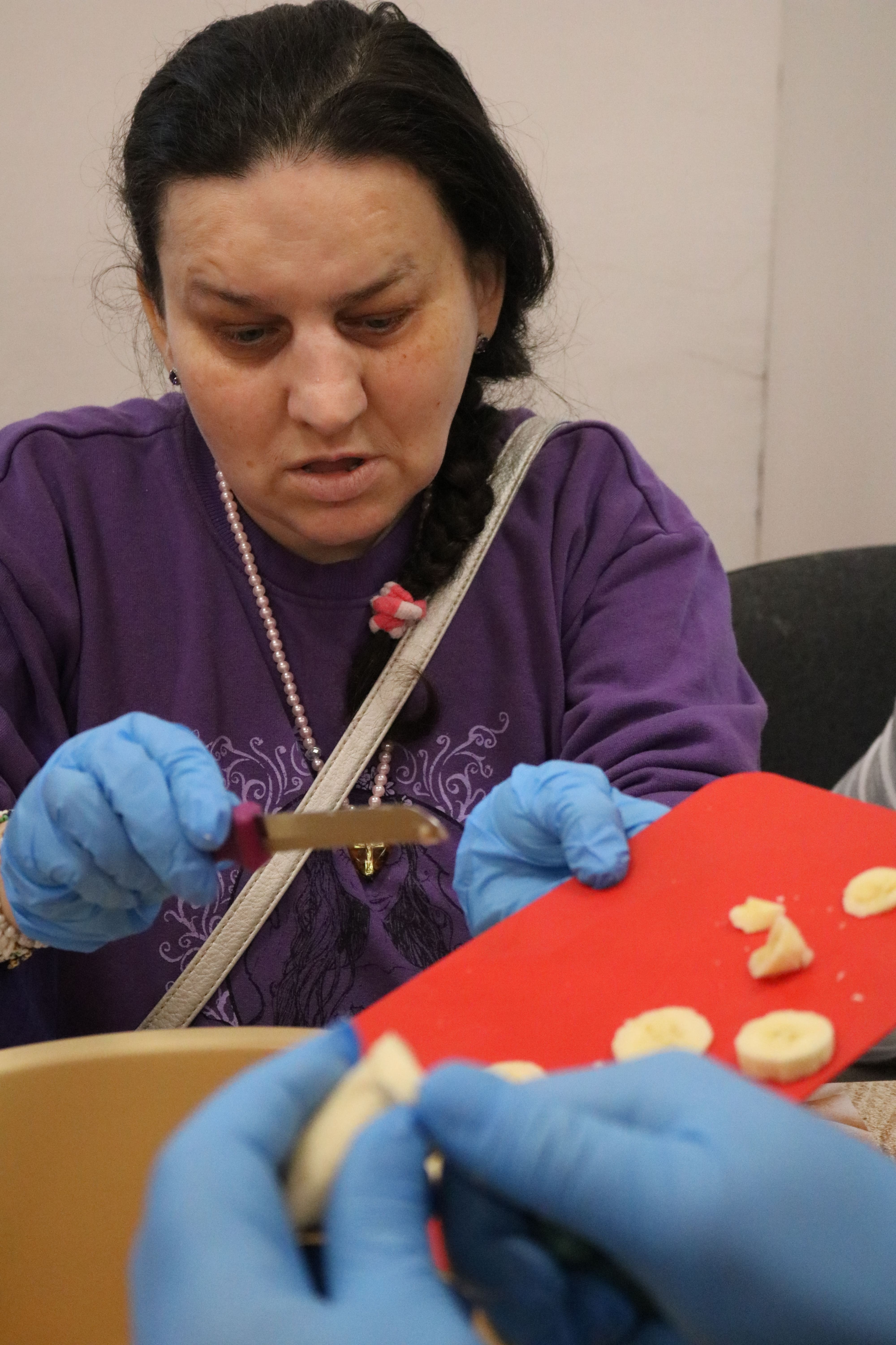 Kulminacyjnym punktem zajęć było wspólne przygotowywanie deserów. Pod opieką instruktorów uczestnicy przygotowali stanowiska pracy i przystąpili do wykonania zadania. Poznali zasady prawidłowego obchodzenia się z owocami oraz dbania o higienę i bezpieczeństwo w kuchni. W trakcie tego etapu obierali owoce, kroili je na odpowiednie kawałki, a następnie tworzyli własne desery, wykorzystując galaretki i inne dodatki. Po skończeniu własnych kompozycji deserowych, nadszedł czas na degustację. To był pełen radości i dumy moment, gdy uczestnicy mogli spróbować efektów swojej pracy. Po wspólnej „smacznej integracji” wszyscy zabrali się do sprzątania stanowisk, wykonując to zadanie z zaangażowaniem oraz dużą odpowiedzialnością, dbając o porządek.