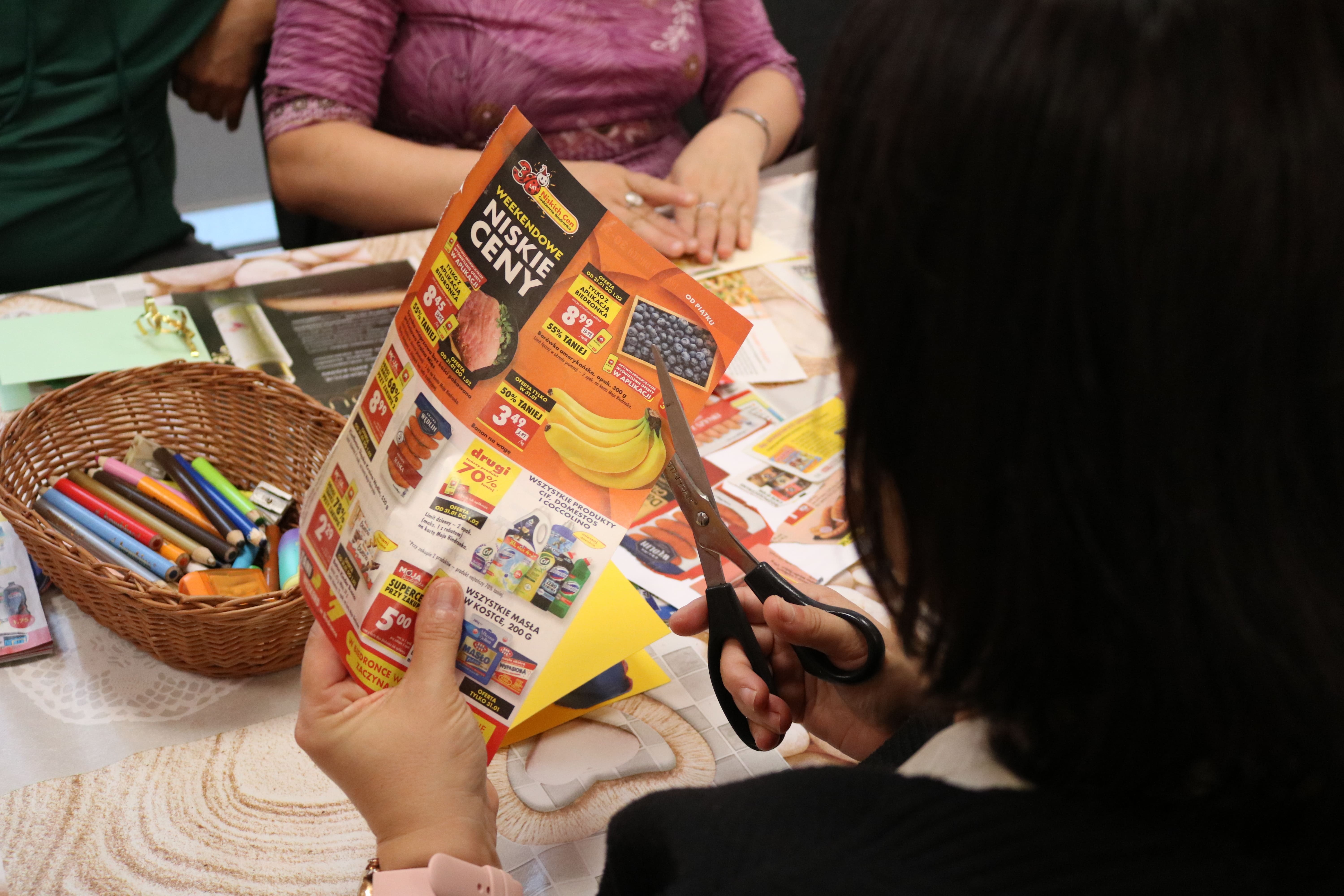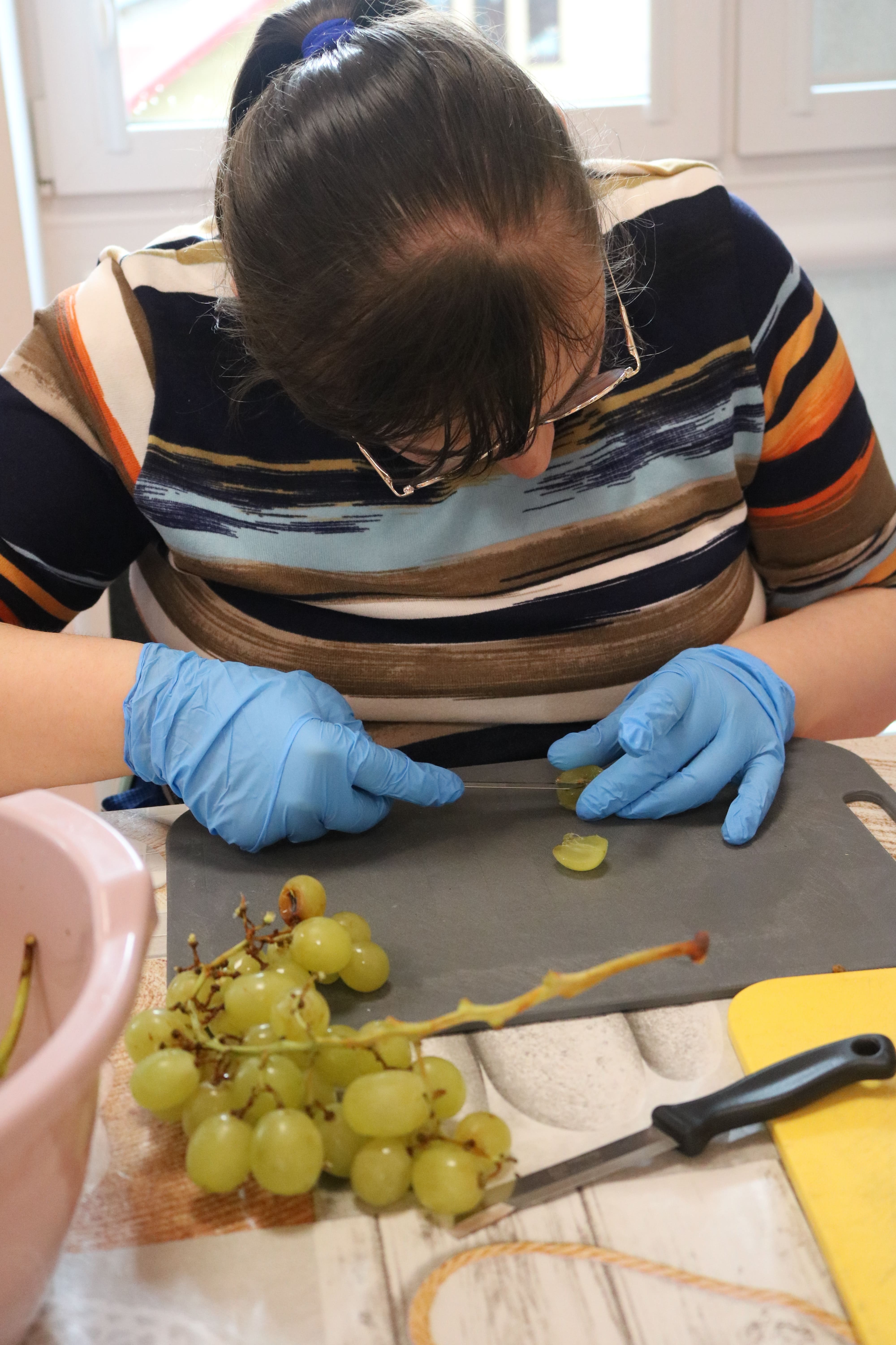 Pierwszą część warsztatów stanowiła gra dydaktyczna, której celem było rozwijanie spostrzegawczości i umiejętności opisu poszczególnych akcesoriów kuchennych oraz owoców. Opisując ich wygląd, zapach, kolor i smak, uczestnicy nie tylko doskonalili swoje umiejętności językowe, ale także poszerzali wiedzę na temat różnorodności owoców. Gra była również okazją do poznania mniej popularnych gatunków, które można było wykorzystać w codziennej kuchni.